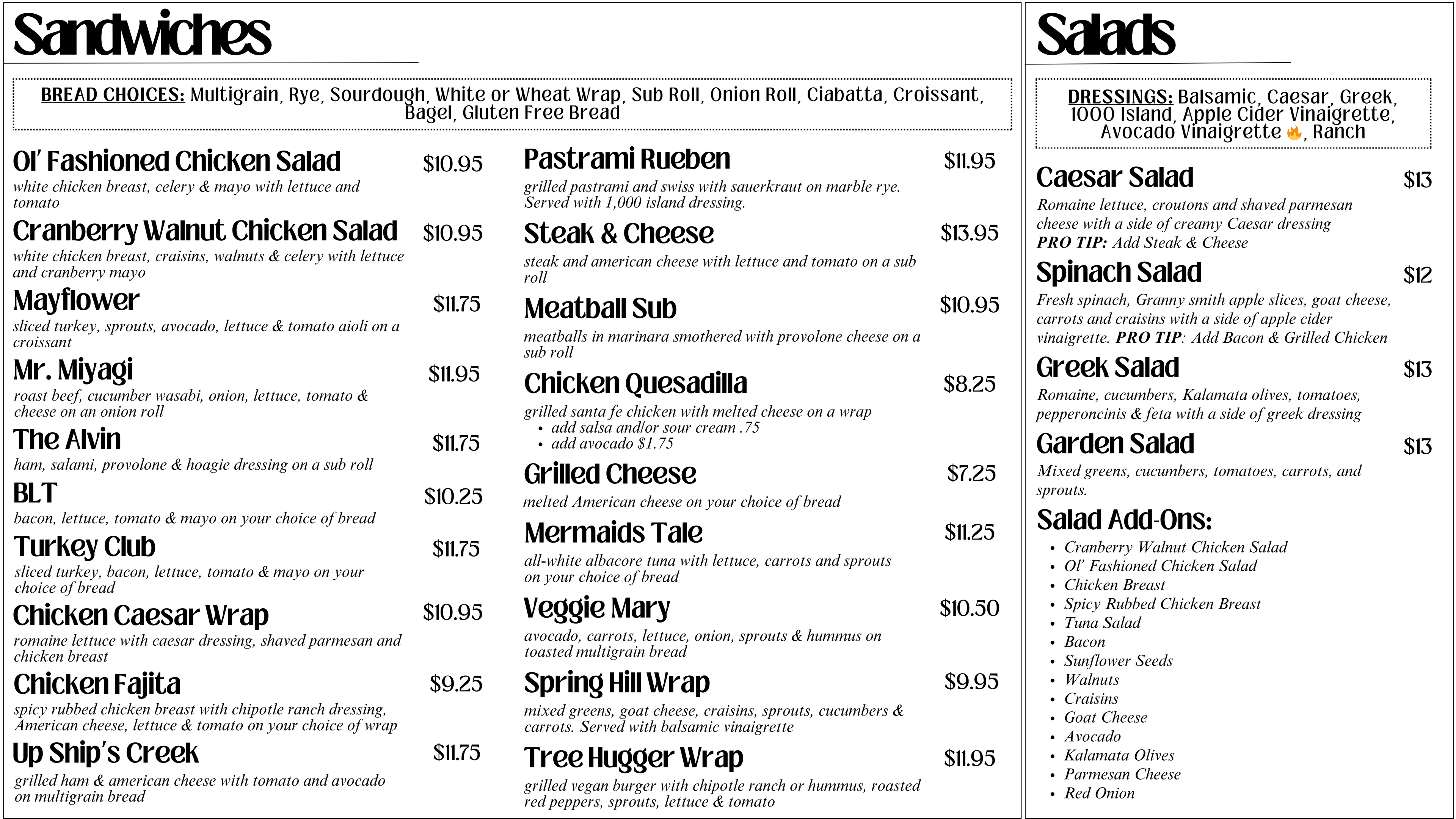 Our breakfast and lunch menus are available all day.